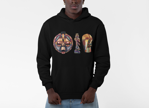Artist designs based on the Bakota, Kifuebe and Senoufo Masks